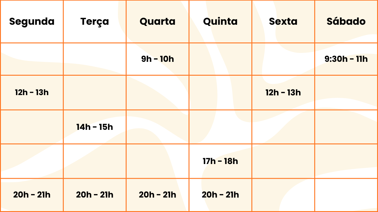 Nossas aulas de conversação acontecem de segunda à sábado, pela plataforma Google Meet.